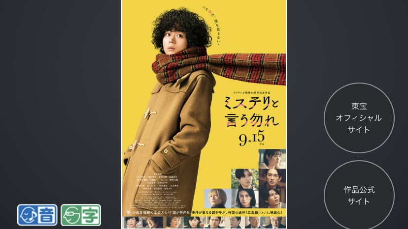 東宝株式会社より2023/9/15(金)公開 映画『ミステリと言う勿れ』の日本語字幕版スケジュール案内です。