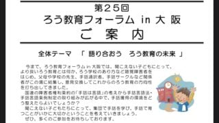 情報共有11/23(木・祝)第25回ろう教育フォーラムin大阪の案内 大聴協事務局からの情報です。11月23日に開催される第25回ろう教育フォーラムの案内です。 『第25回ろう教育フォーラム』日時:2023 年11月23日(木・祝)10:00~16:00会 場: 吹田市立千里山コミュニティセンター申込締切:1... 2023.11.12情報共有