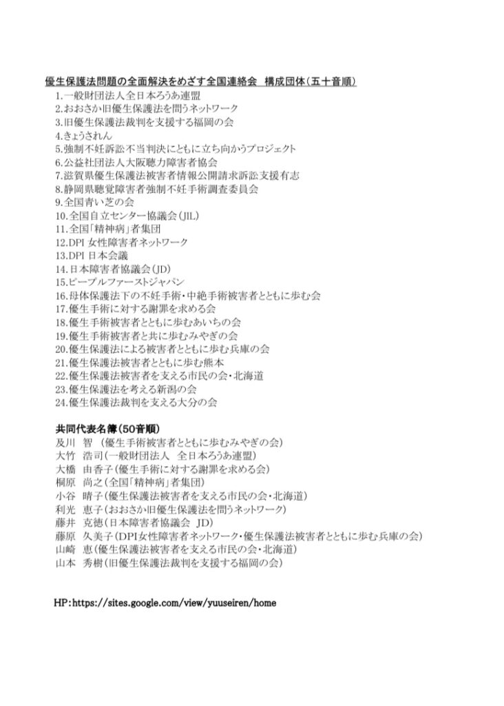 優生保護法問題の全面解決をめざす全国連絡会のホームページhttps://sites.google.com/view/yuuseiren/case/osaka?authuser=0