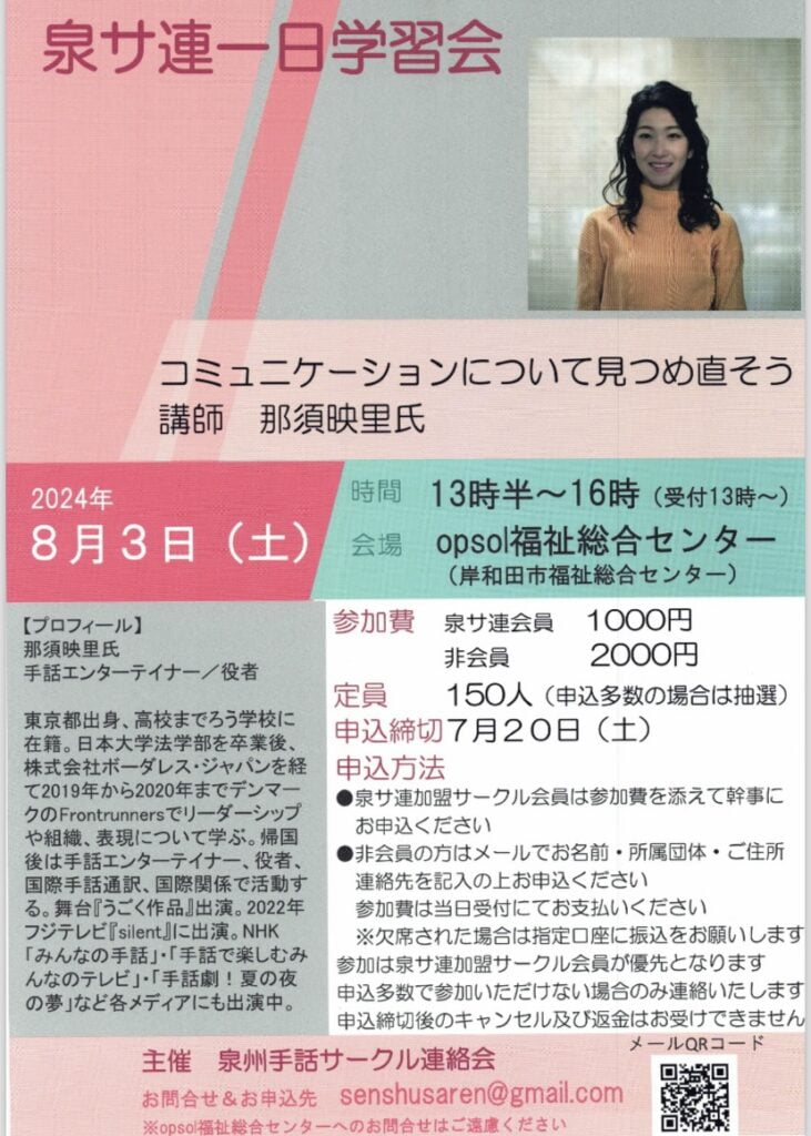 情報共有泉サ連8/13(土) 泉サ連一日学習会のお知らせ 情報共有Screenshot2024.07.16泉州手話サークル連絡会からのお知らせになります。詳細は下図のとおりです。泉サ連一日学習会.pdfダウンロード