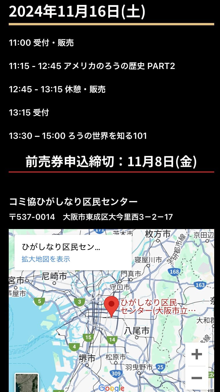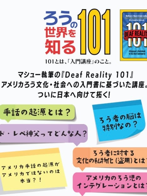 お知らせ11/16(土)アメリカのろうの歴史in大阪 お知らせScreenshot2024.10.3111月16日(土)に和泉市聴覚障害者福祉協会会員の村上信次によるイベントのお知らせです。詳細については下図をご確認ください。https://deafstore.jp/2024-tour-ticket前売券申込締切:11月8日(金)