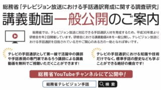 情報共有総務省「テレビジョン放送における手話通訳育成事業」 大聴協事務局からの情報です。 連盟から総務省「テレビジョン放送における手話通訳育成事業」の講義動画について連絡がありました。 2024.09.06情報共有