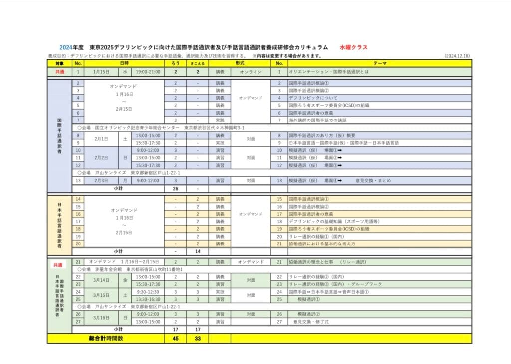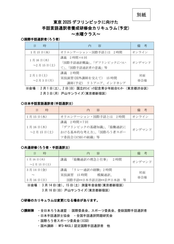 東京2025デフリンピックに向けた国際手話通訳者及び手話言語通訳者養成研修会の追加募集案内がありました。