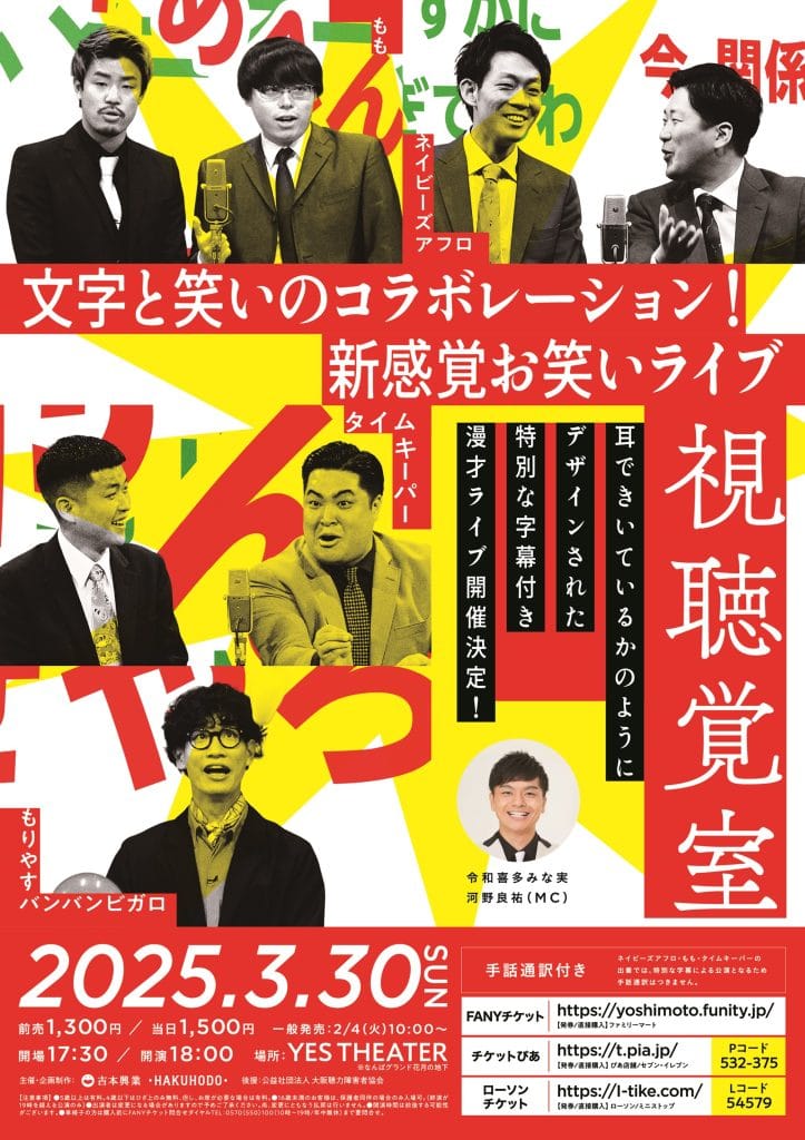 3/30 吉本興業お笑いライブ「視聴覚室」のお知らせ | 公益社団法人 大阪聴力障害者協会 http://daicyokyo.jp/info/20250330.html