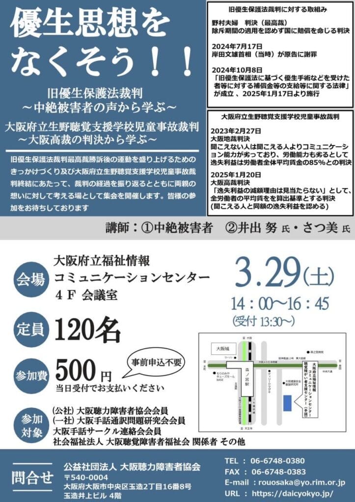 優生保護法問題の全面解決をめざす全国連絡会のホームページhttps://sites.google.com/view/yuuseiren/case/osaka?authuser=0