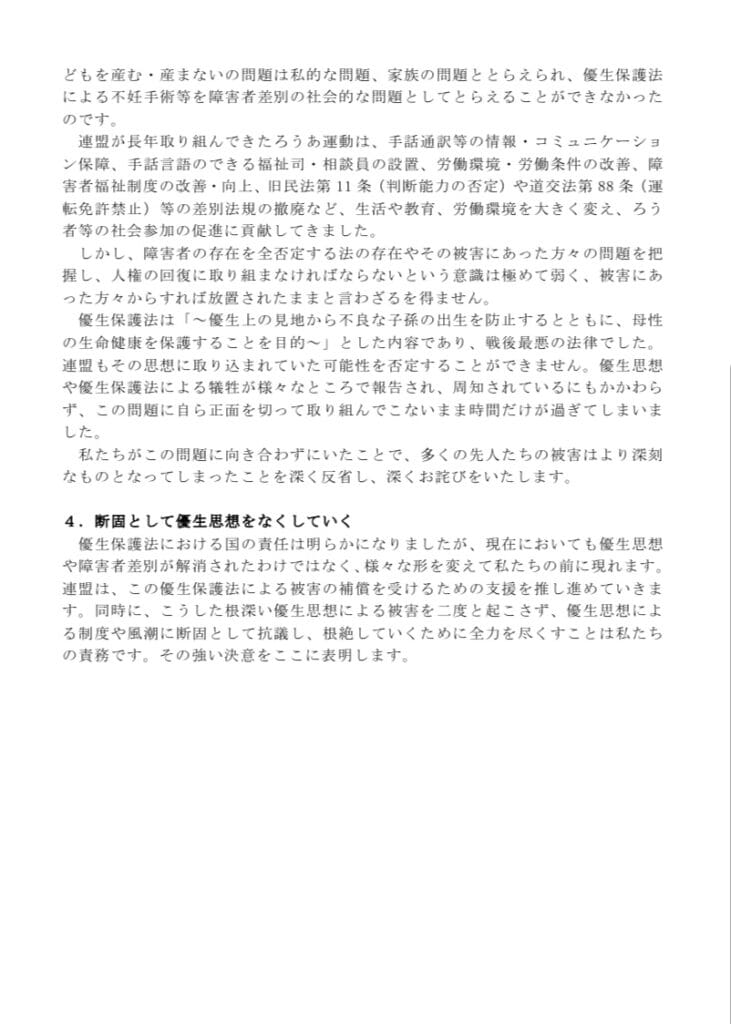 全日本ろうあ連盟は、4月26日に「優生思想の根絶に全力を尽くす決意の表明」を発表しました。
