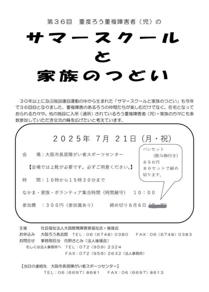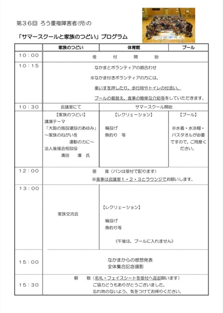 大聴協事務局から「サマースクールと家族のつどい」のお知らせになります。
