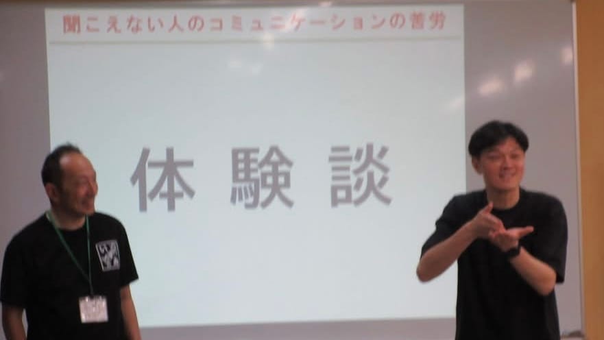 お知らせ年輪大学院年輪大学院「手話を実践しよう」 お知らせ2025.07.18先日の7月10日に当協会の村上さんと高橋さんが年輪大学院で講義を行いました。その時の様子が和泉市社会福祉協議会のfacebookに掲載されました。