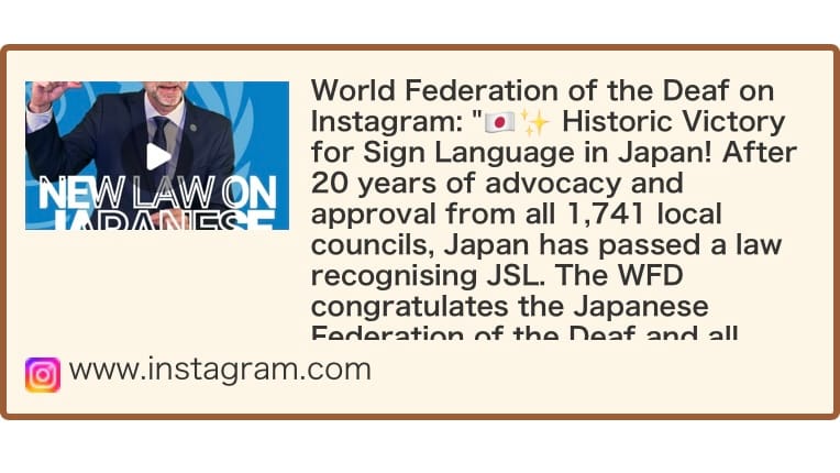 World Federation of the Deaf on Instagram: "🇯🇵✨ Historic Victory for Sign Language in Japan!After 20 years of advocacy and approval from all 1,741 local councils, Japan has passed a law recognising JSL.The WFD congratulates the Japanese Federation of the Deaf and all Deaf communities on this historic achievement!🔗 Learn more: https://wfdeaf.org/the-legal-recognition-of-national-sign-languages/"