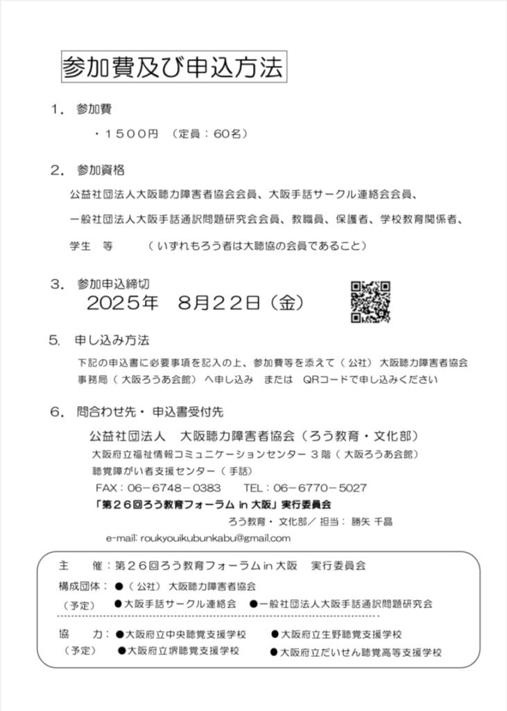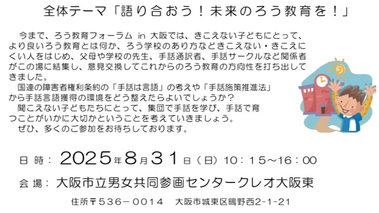 8月31日に開催される第26回ろう教育フォーラムの案内です。