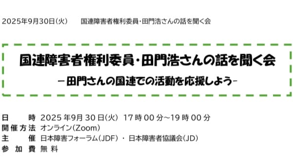 連盟より「国連障害者権利委員・田門浩さんの話を聞く会」の案内がありました。