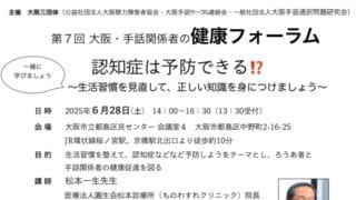 情報共有6/28(土)「第7回大阪・手話関係者の健康フォーラム」の案内 大聴協事務局からの情報です。『第7回大阪・手話関係者の健康フォーラム』案内がありました。詳細は下記のチラシをご覧ください。 大阪健康フォーラム ビラダウンロード 2025.05.18情報共有