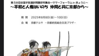 情報共有第58回全国手話通訳問題研究集会サマーフォーラムin きょうと 大聴協事務局からの情報です。 8月8日(金)~10日(日)に京都で開催される「第58回全国手話通訳問題研究集会~サマーフォーラムin きょうと~」のご案内です。申し込みは直接申し込むことになっています。 PDFは全24頁となっております。 ... 2025.05.28情報共有