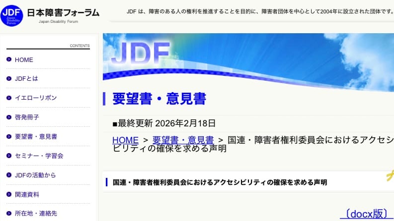 国連・障害者権利委員会におけるアクセシビリティの確保を求める声明について