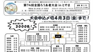 情報共有NEW第74回全国ろうあ者大会inとやま 速報第3~5号 大聴協事務局からの情報です。第74回全国ろうあ者大会inとやま 速報第3~5号です。 大会HP 全国ろうあ者大会(富山)速報第3号(カラー)ダウンロード 全国ろうあ者大会(富山)速報第4号(カラー)ダウンロード 全国ろうあ者大会(富山)速報... 2026.03.17情報共有