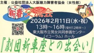 情報共有NEW2/23(月・祝) 手話対策部懇談会(大聴協) 大聴協事務局からの情報です。 手話対策部の懇談会のお知らせです。詳細は下記のチラシをご確認ください。 20260223手話対策部懇談会ダウンロード 2026.01.26情報共有