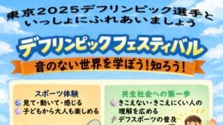 情報共有NEW2月28日(日)デフリンピックフェスティバル 大聴協事務局からの情報です。2月28日(日)、茨木市立市民体育館にて開催するデフリンピックフェスティバルチラシです。 近畿ろうあ連盟主催近畿ろうあ連盟スポーツ部主管参加費1,000円 ※高校生までは無料 2月28日近畿ろうスポーツ部デフリン... 2026.01.28情報共有