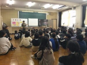 4年生です。 福祉の学習として、今日は、聴覚に障碍をお持ちの方と通訳の方をお招きして、耳が聞こえない方の困りごとや、コミュニケーションをとるために、どのような方法があるかなどを教えてもらいました。 コミュニケーションを取るためには、「手話」...