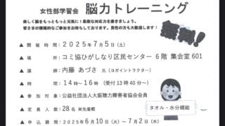 情報共有7/5(土) 大聴協女性部学習会の申込のお知らせ 大聴協女性部からの連絡です。 女性部学習会の申込締切は7/2(水)までです。 詳細は下図のとおりです。 大聴協女性部学習会ダウンロード 2025.06.05情報共有