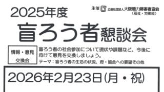 情報共有NEW2/23(月・祝) 盲ろう者懇談会(大聴協) 大聴協事務局からの情報です。 福祉•労働部の懇談会のお知らせです。詳細は下記のチラシをご確認ください。 20260223盲ろう者懇談会ダウンロード 2026.01.27情報共有
