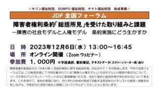 情報共有12/6(水)JDF全国フォーラムの案内 大聴協事務局からの情報です。12月6日に開催されるJDF全国フォーラムの案内です。 『JDF 全国フォーラム』障害者権利条約「総括所見」を受けた取り組みと課題−障害の社会モデルと人権モデル 条約実施にどう生かすか−日時 2023年12月6日... 2023.11.03情報共有